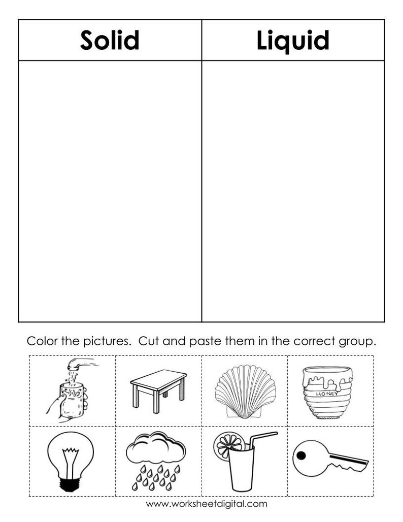 Matter Sorting Activity | Solid Liquid and Gas Sort | Cut & Paste Worksheet