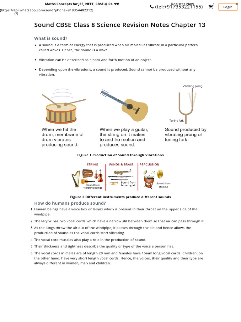 Sound CBSE Class 8 Science Notes - Chapter 13 | PDF | Sound | Frequency