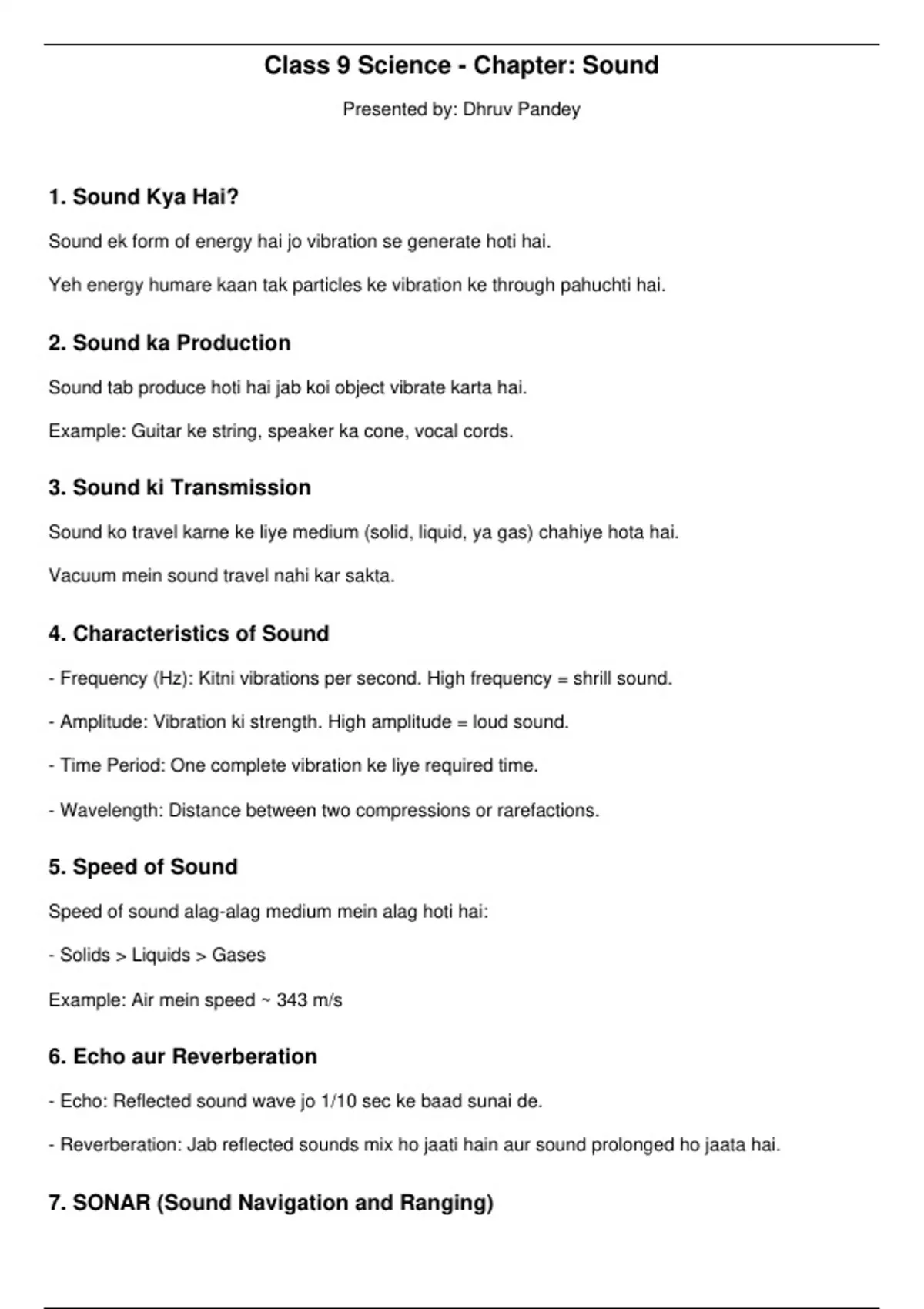Class 9 Science: Sound Chapter Notes | PDF | Sound | Waves