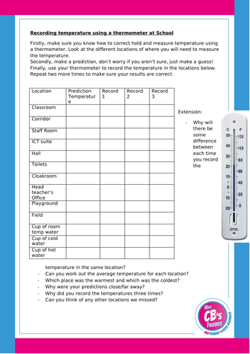 Science Investigation - Measuring temperature - suitable for at school ...