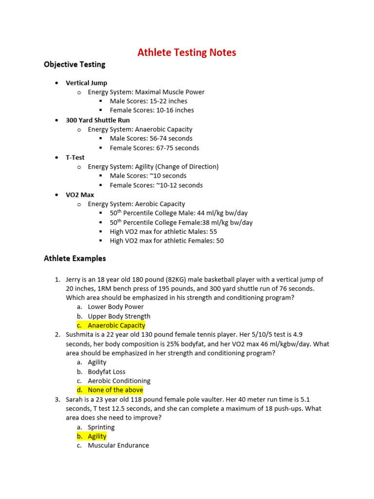 Athlete Testing Notes | PDF | Strength Training | Sports Science