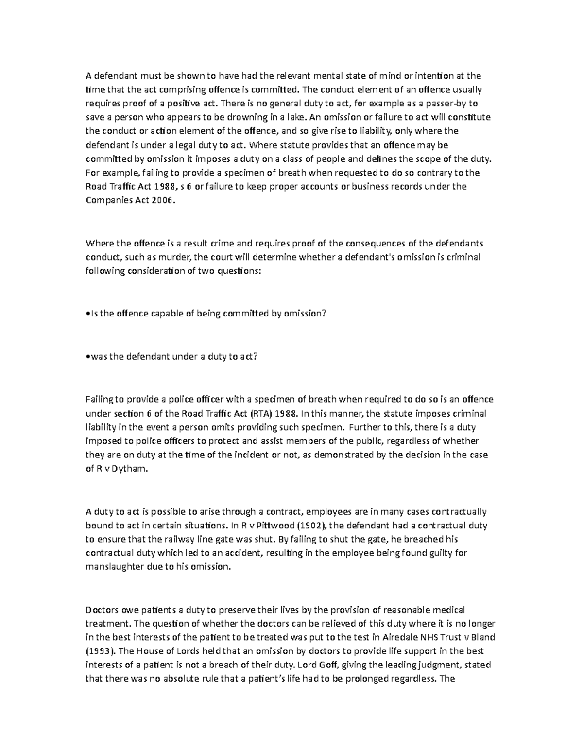 Criminal law - A defendant must be shown to have had the relevant ...