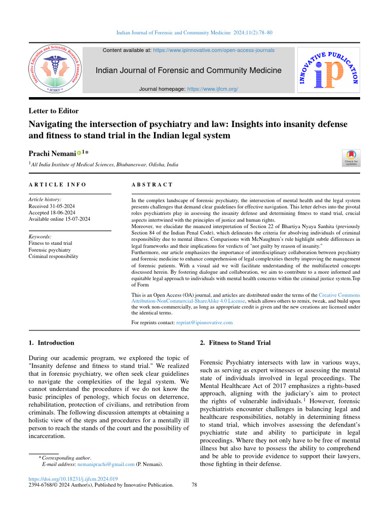Criminal Responsibility in Mental Illness | PDF | Forensic Psychiatry ...