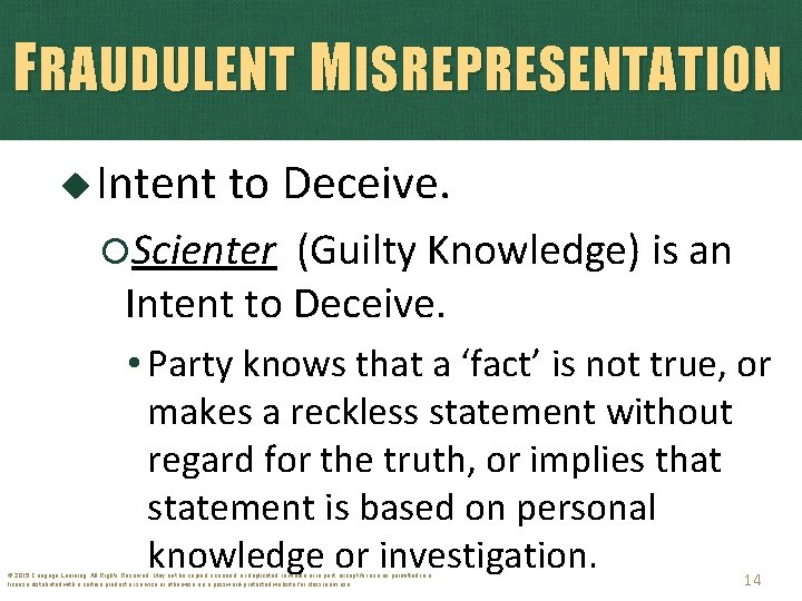 Scienter is a legal term that refers to the intent or knowledge of ...