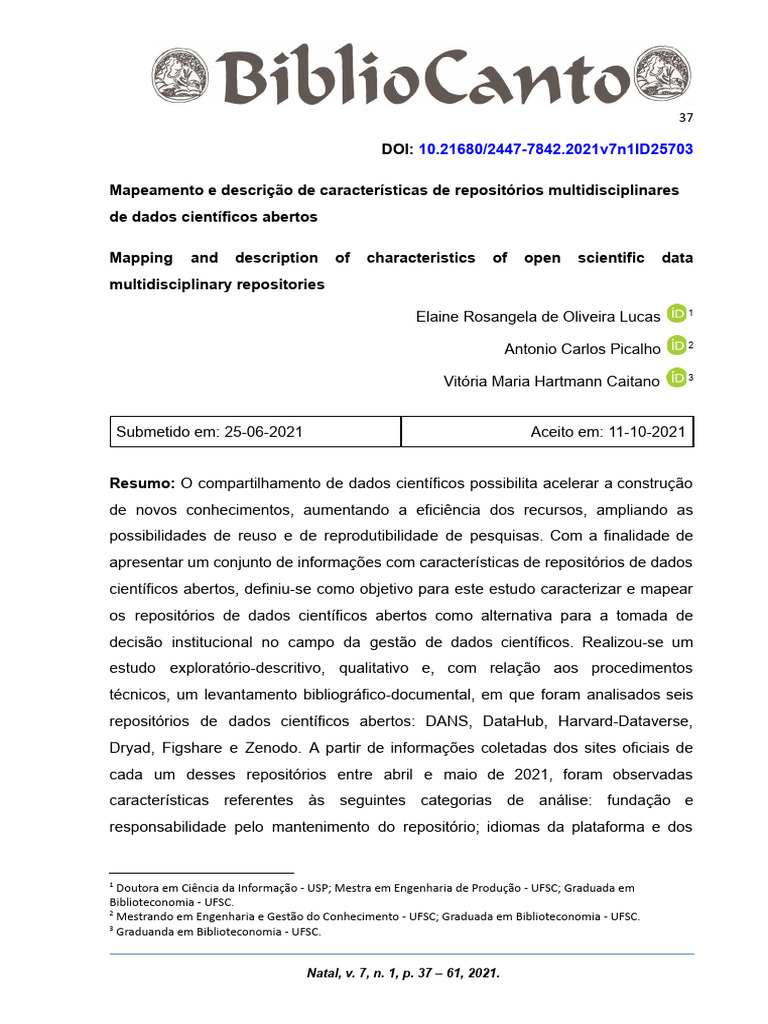 Mapping and Description of Characteristics of Open Scientific Data ...