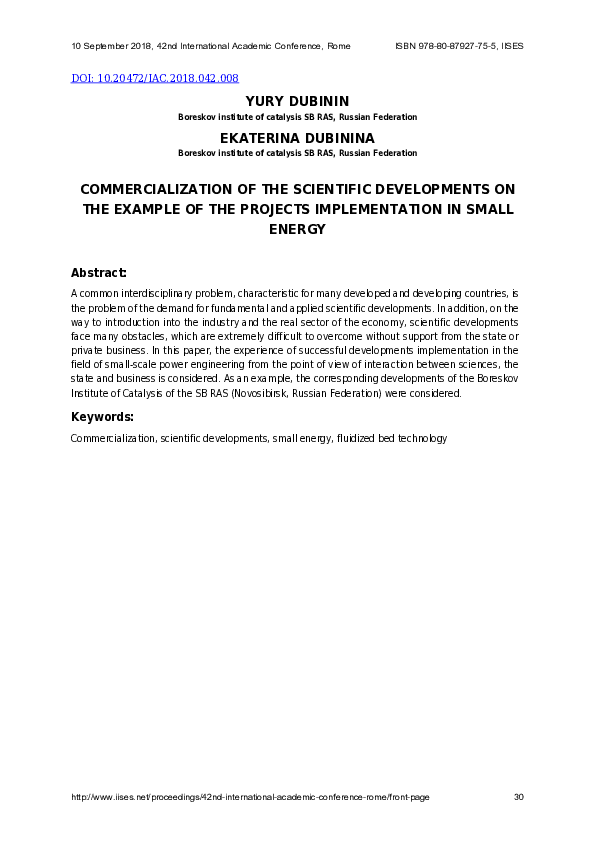 (PDF) Commercialization of the Scientific Developments on the Example ...