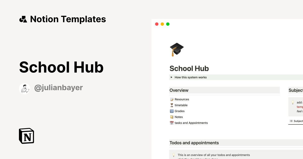 School Hub Template by Julian Bayer | Notion Marketplace