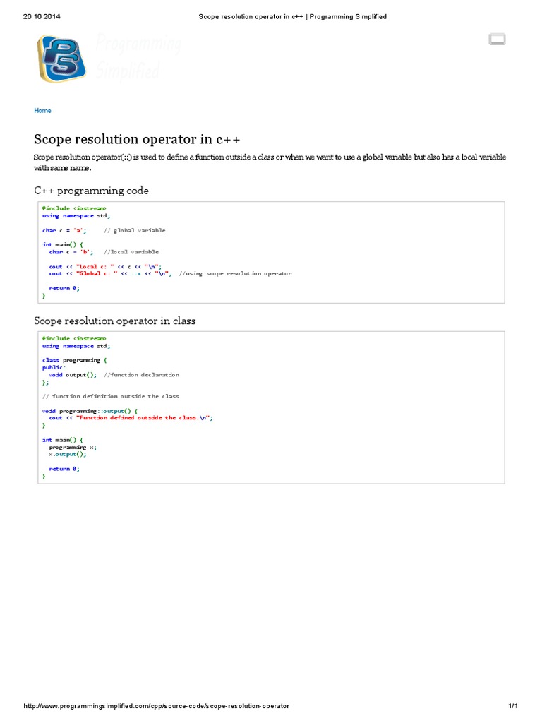 Scope Resolution in C++ | PDF | Pointer (Computer Programming ...