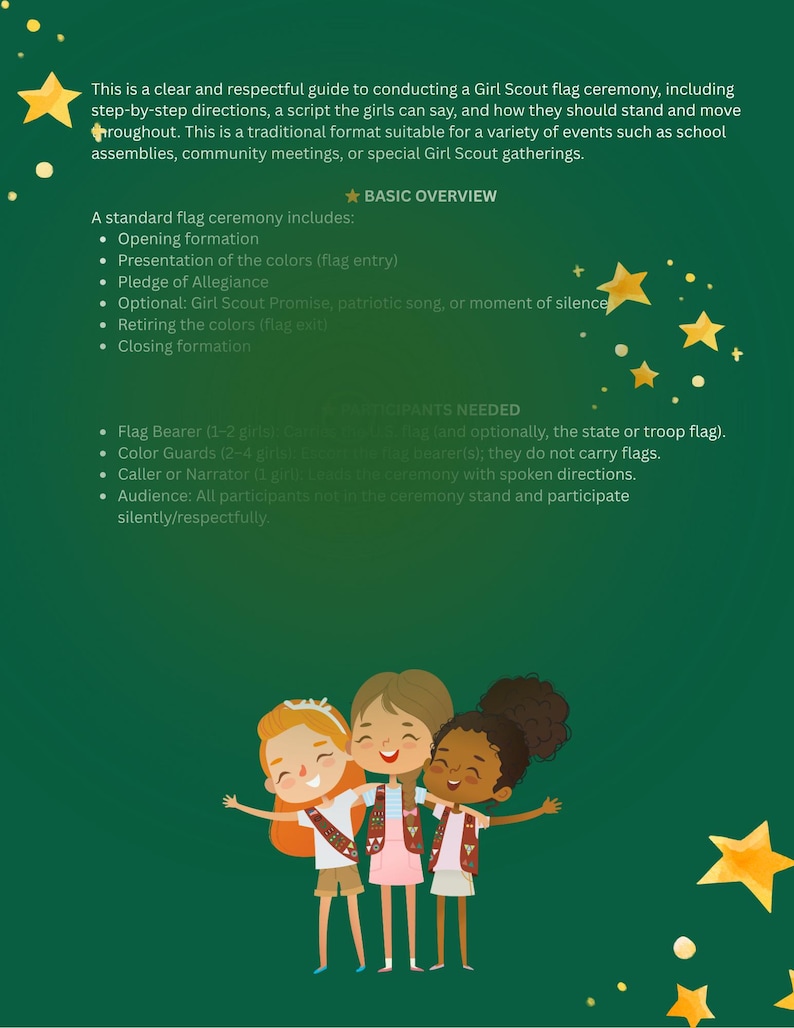 ๐ง Girl Scout Flag Ceremony - (PRINTABLE SCRIPT AND GUIDE)