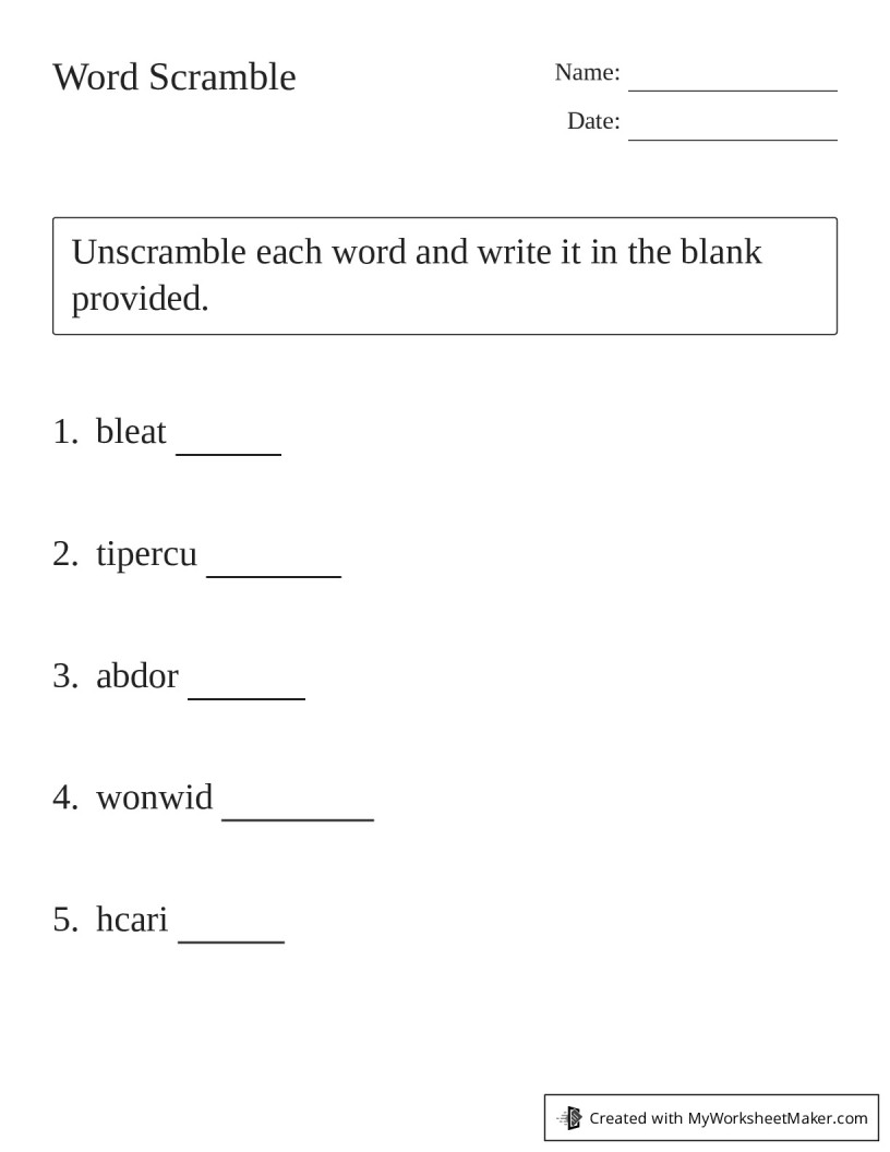 Word Scramble - My Worksheet Maker: Create Your Own Worksheets