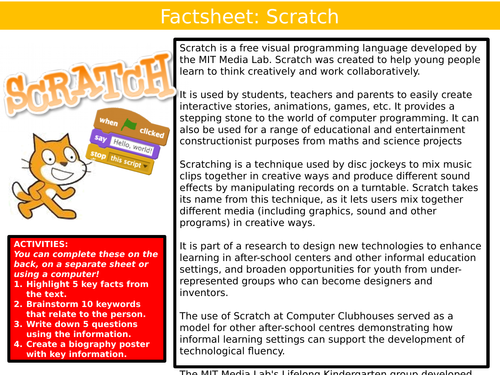 Scratch Programming Factsheet ICT Computing Starter Activity Keywords ...