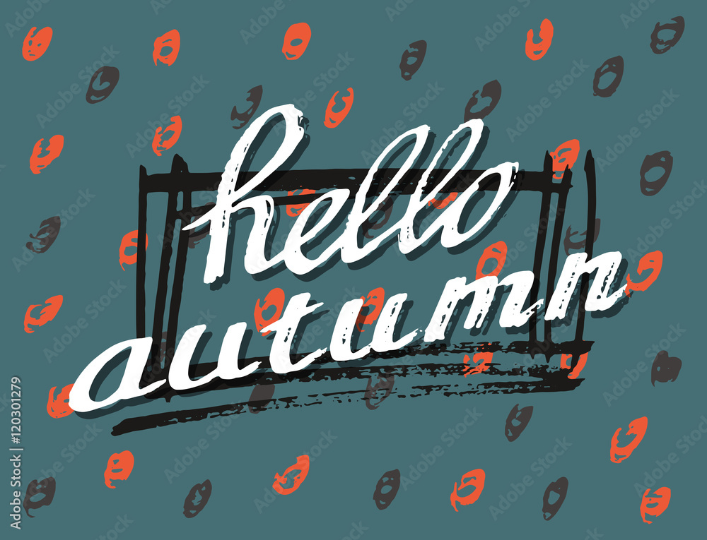 Hello Autumn. Lettering background. Perfect Hand Drawn Scrawl Card for ...