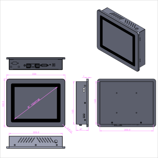 12.1 Inch Industrial Touch Screen Computer With Whole Sheet Metal Casing
