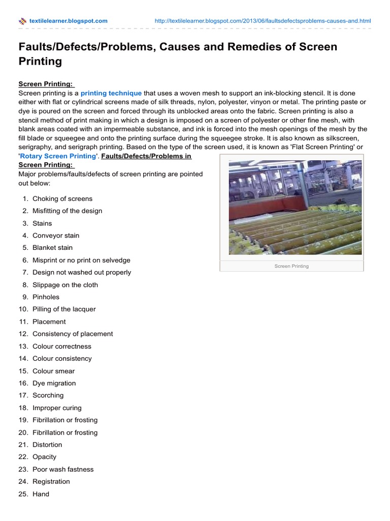 FaultsDefectsProblems Causes and Remedies of Screen Printing | Download ...