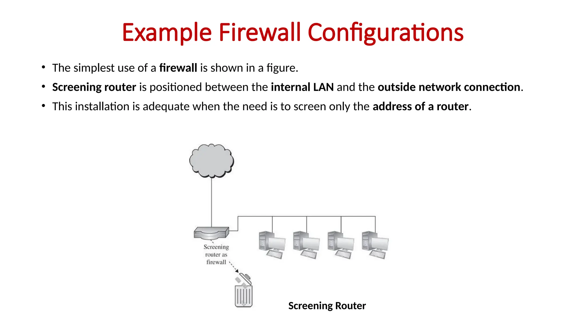 Basic Firewall Architecture 1. Packet filtering: System that examines ...