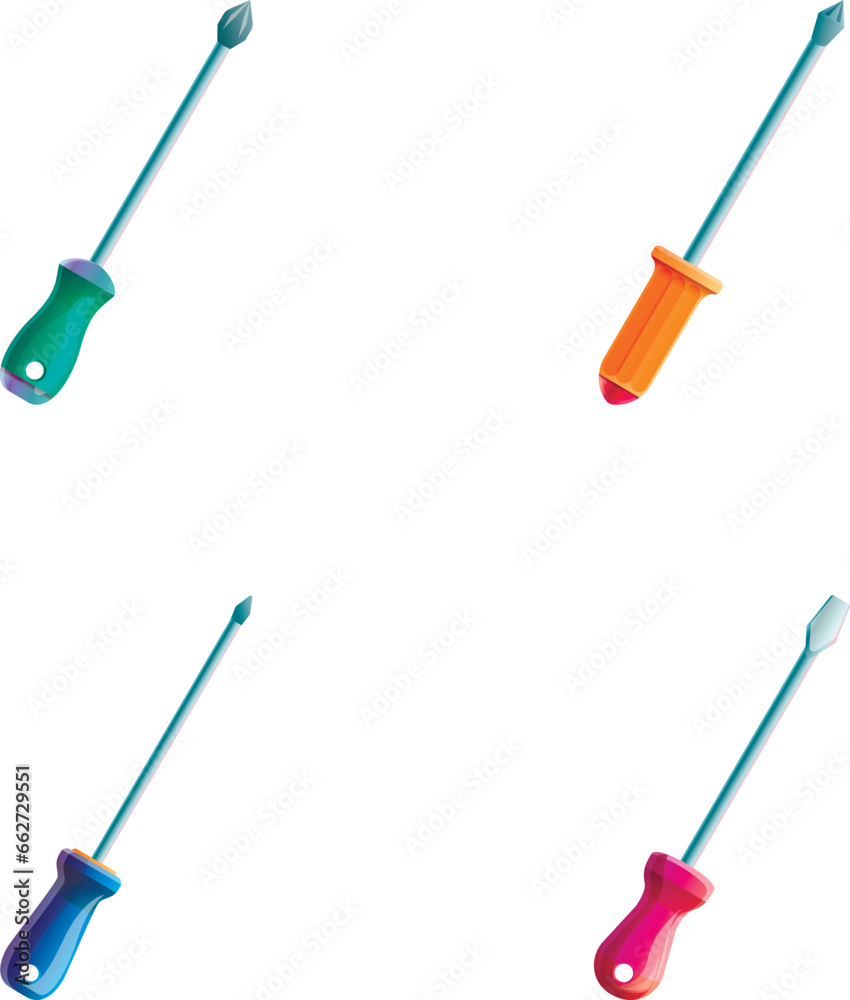 Screwdriver icons set, cartoon style 8894224 Vector Art at Vecteezy