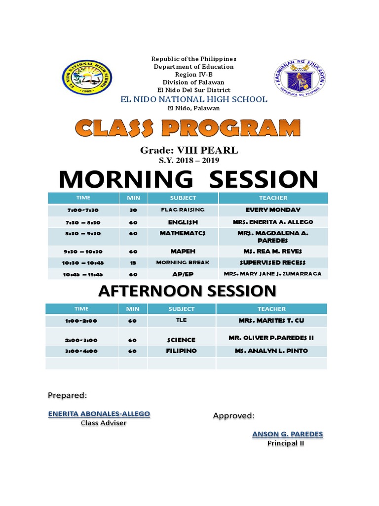 Gapan East Integrated School Class Programs | PDF | Philippines ...