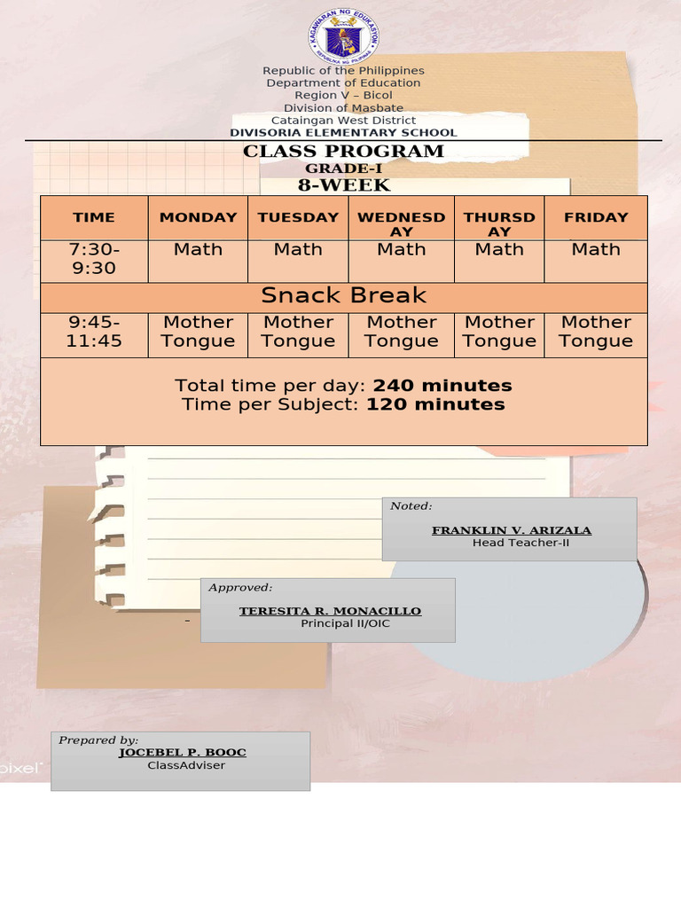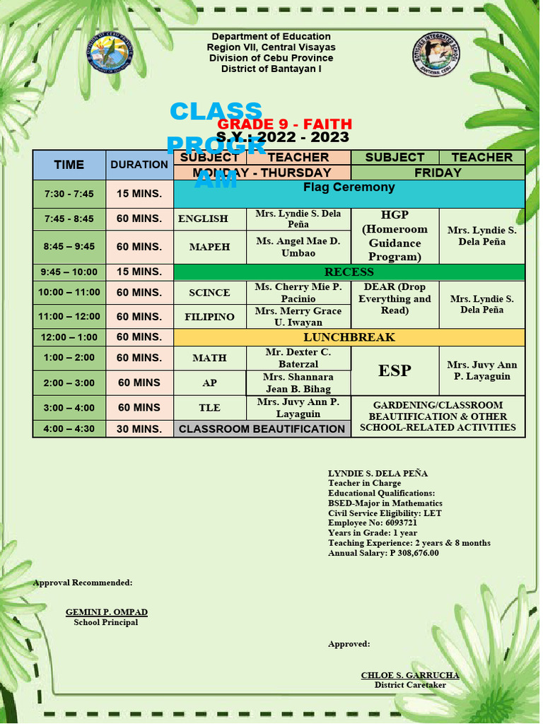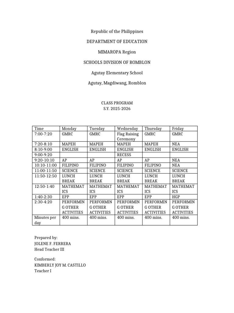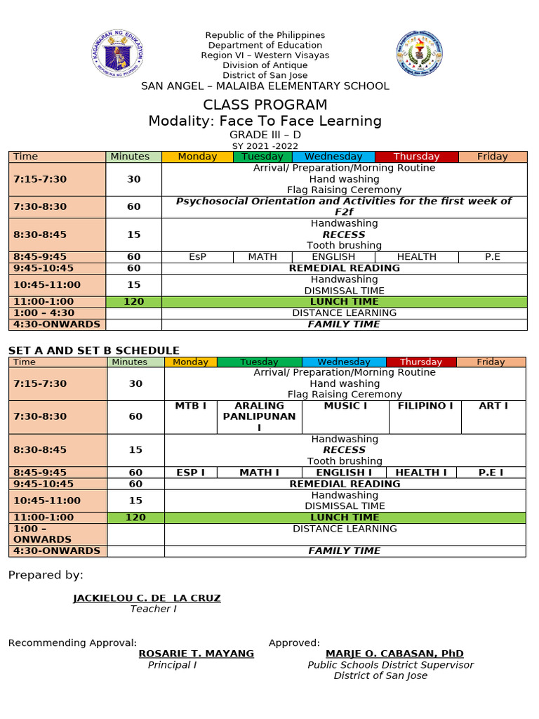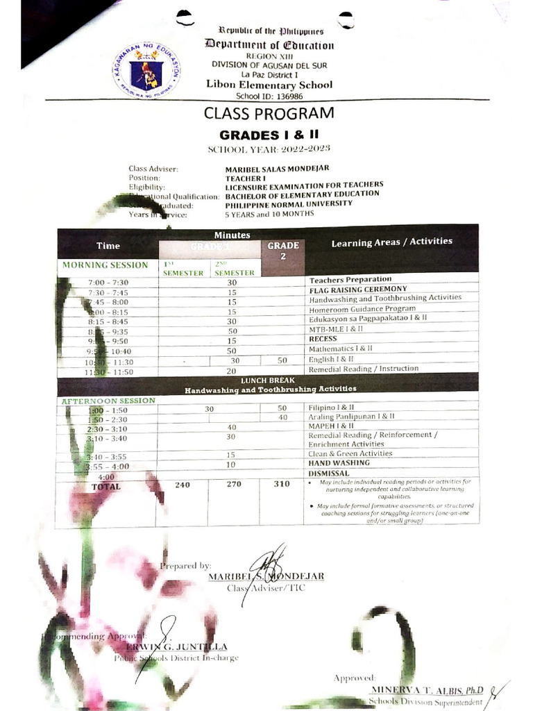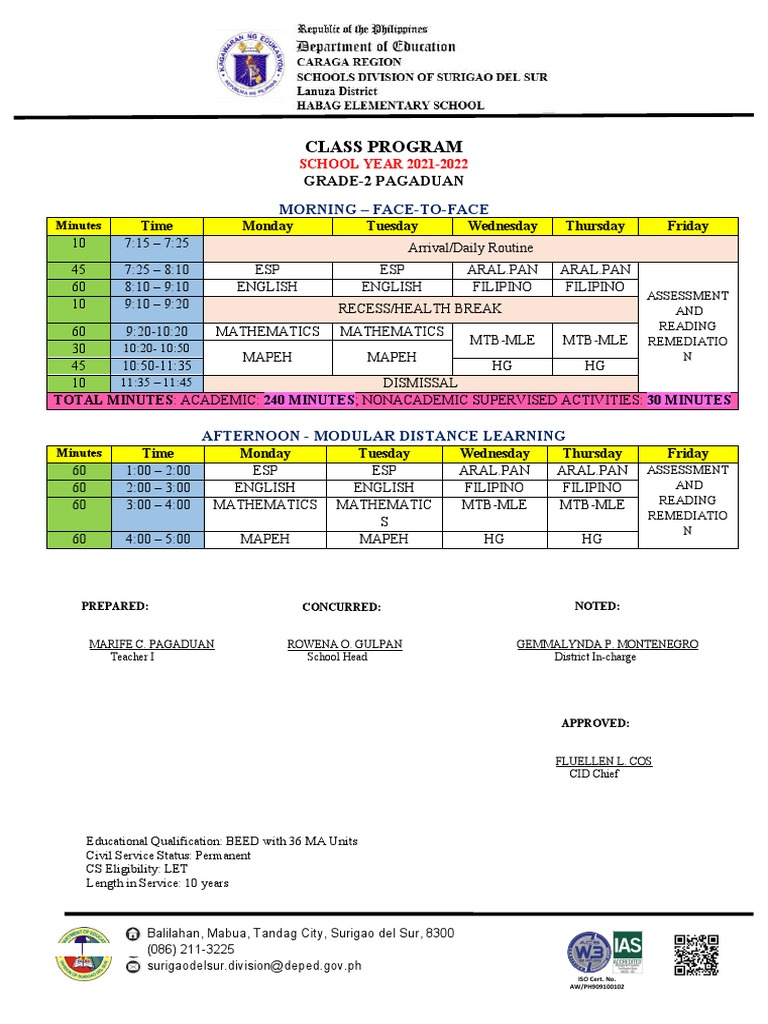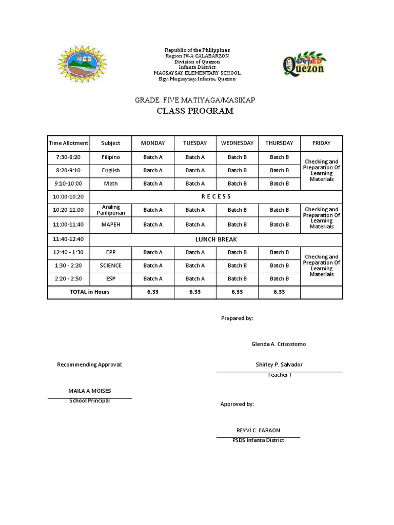 Modified Grade 6 Class Program 2022-2023 | PDF | Philippines