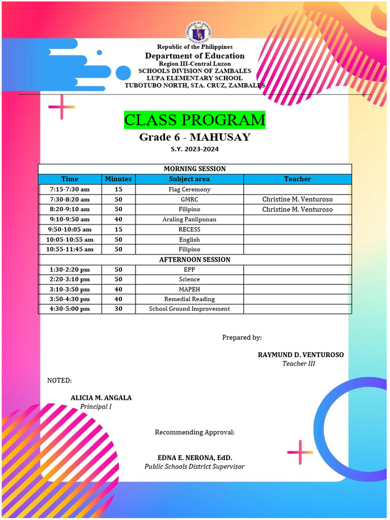 Grade 6 Class Program 2023-2024 | PDF | Government | Philippines