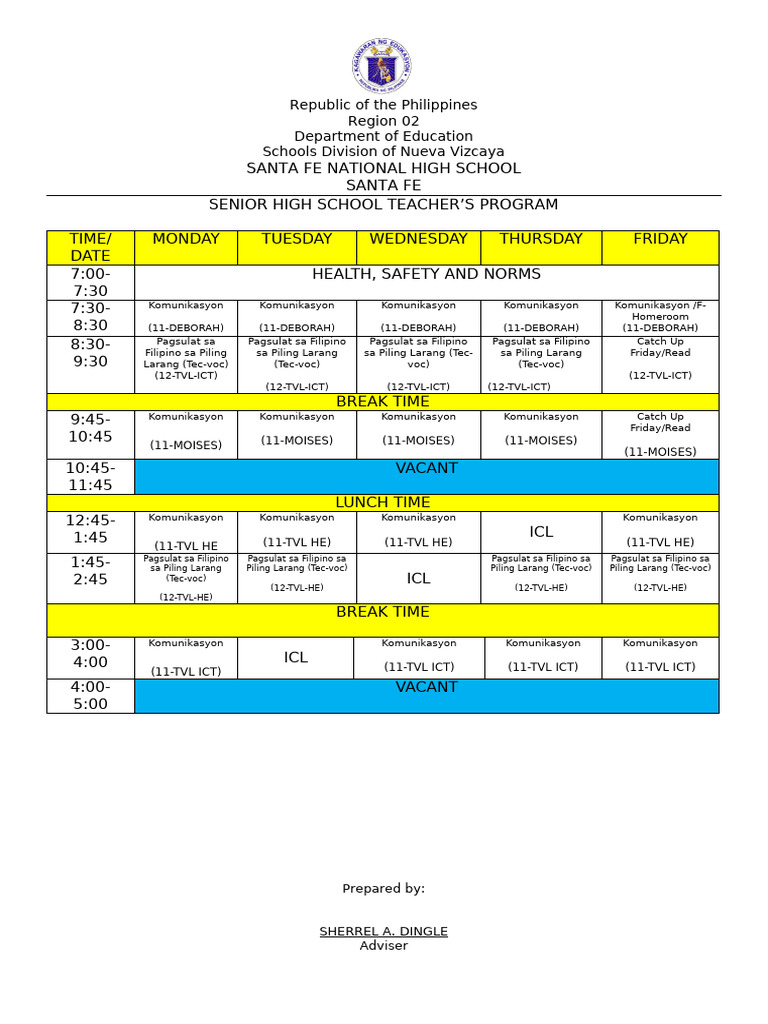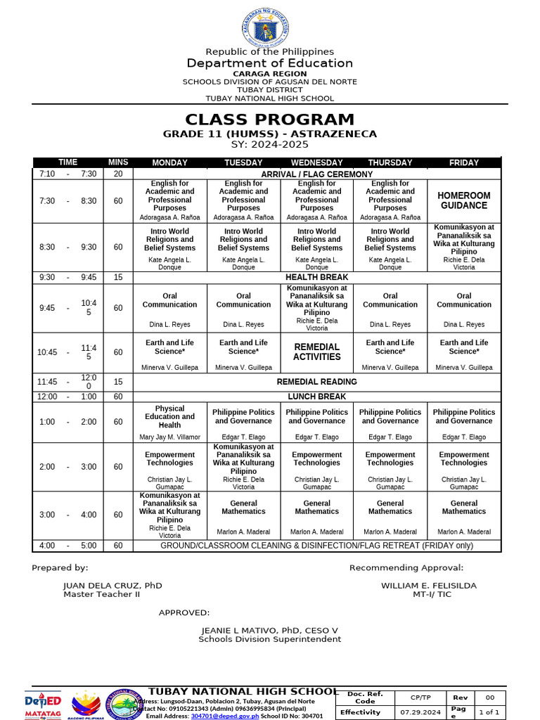 Class Program For Sy 2024 2025 NH | PDF | Liberal Arts Education