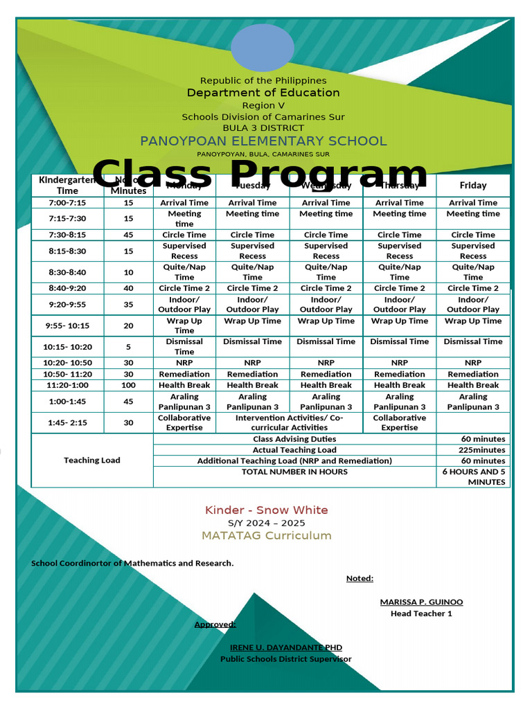 Pawikan Elementary Class Program 2023-2024 | PDF | Academic Term | Teachers