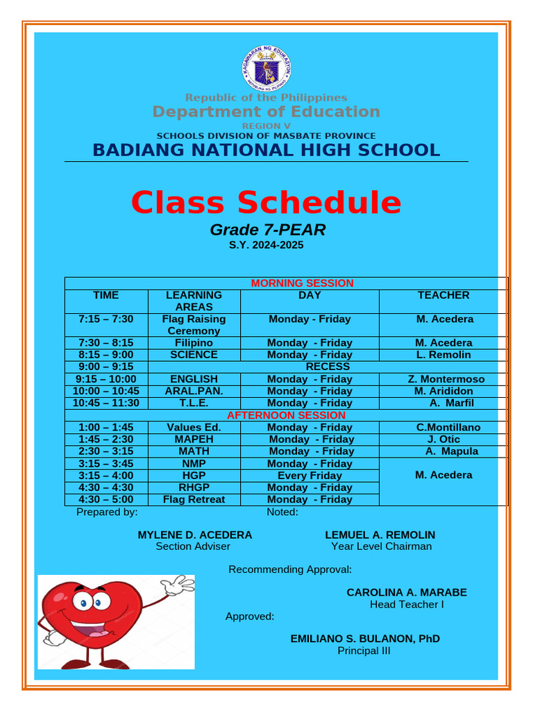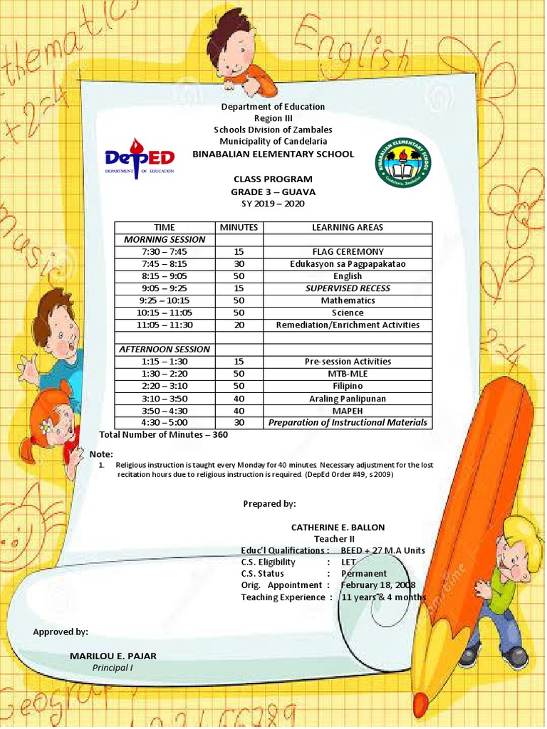 Binabalian Elementary School Class Program Grade 3 – Guava: Morning ...