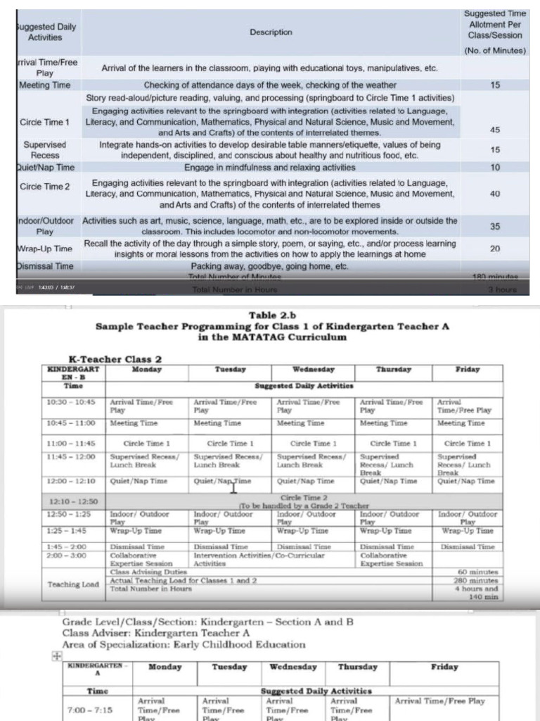 Kindergarten Class Program Schedule | PDF | Human Communication | Cognition