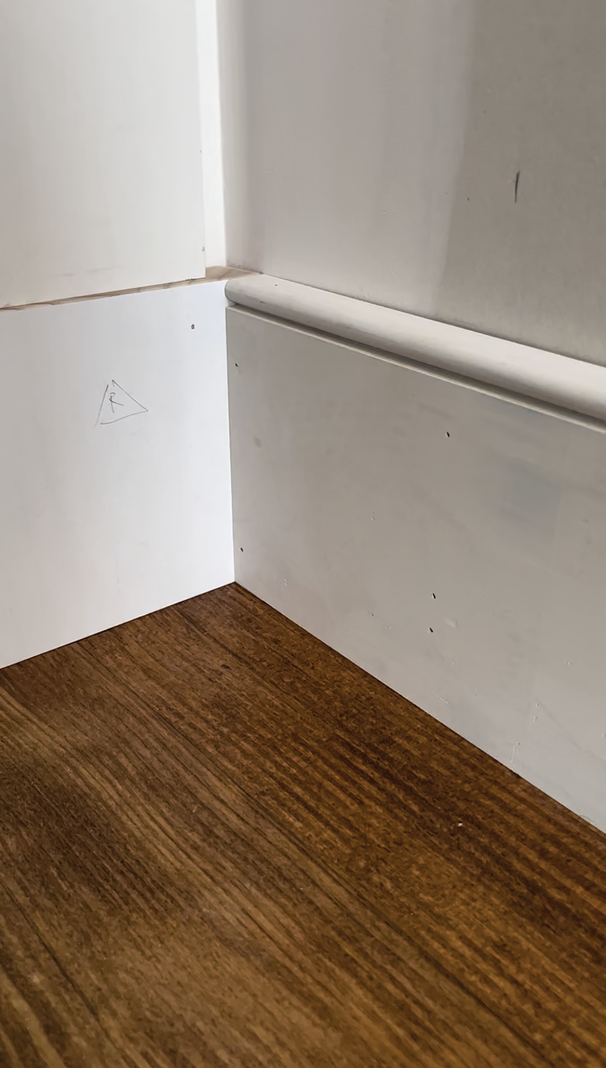 Scribing closet side panel around a baseboard for an IKEA closet PAX ...