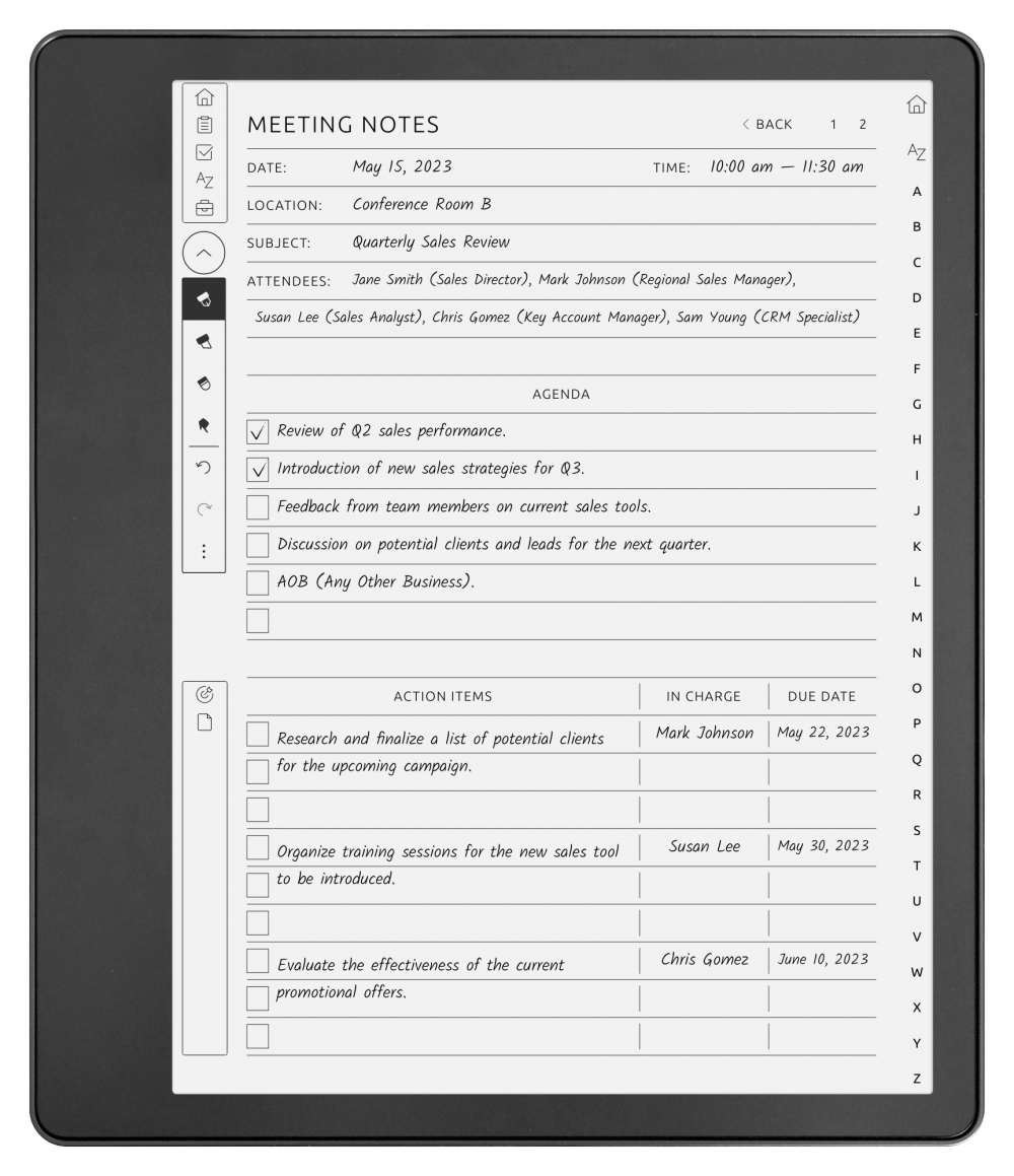 Meeting Notes Template for Remarkable, Supernote, Kindle Scribe, Boox, Kobo