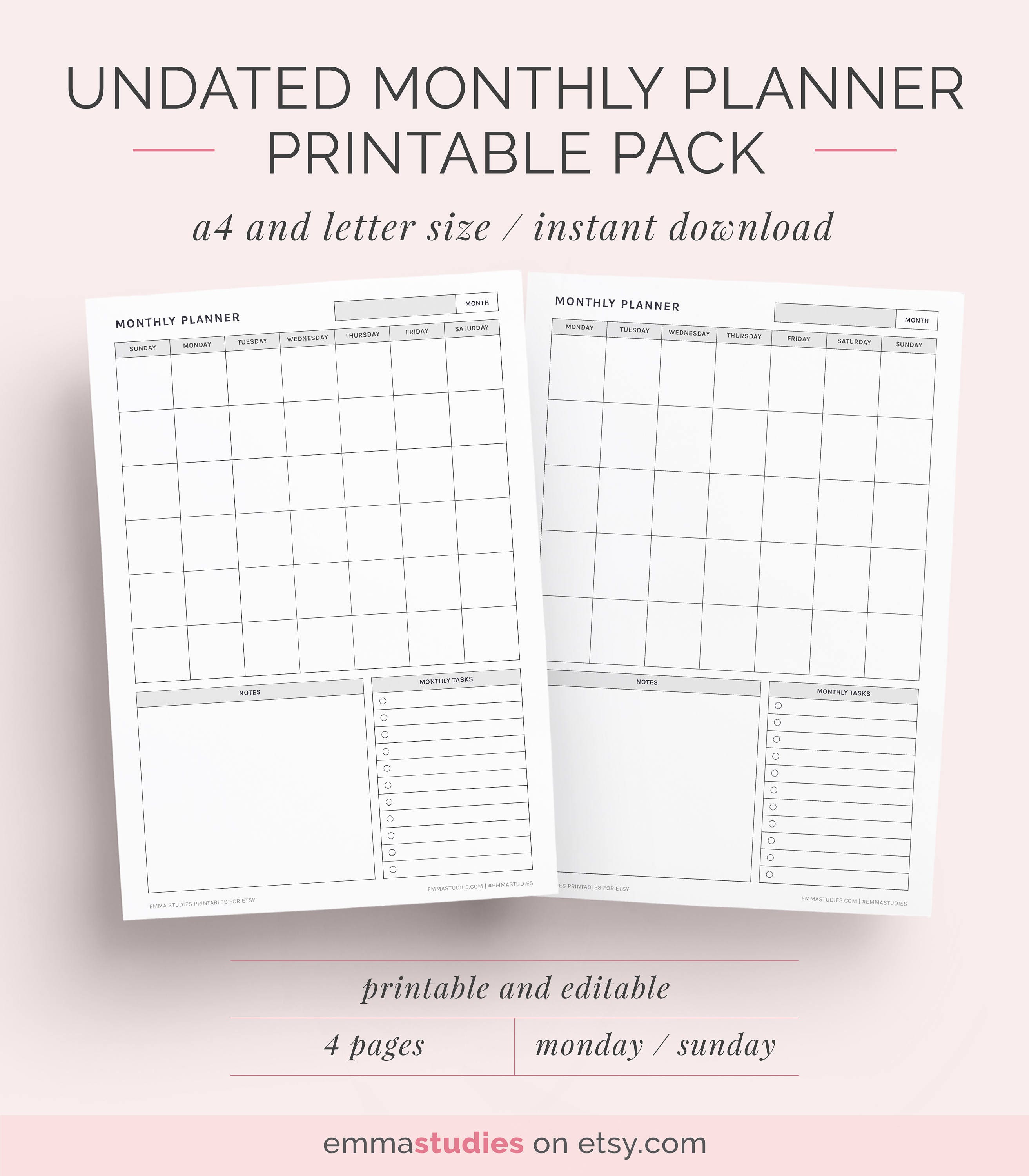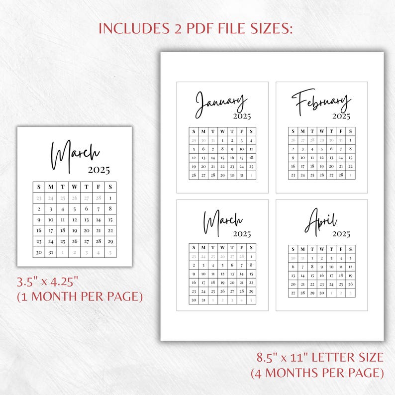 Mini Printable Monthly Calendar: Desk & Planner Organizer (instant ...