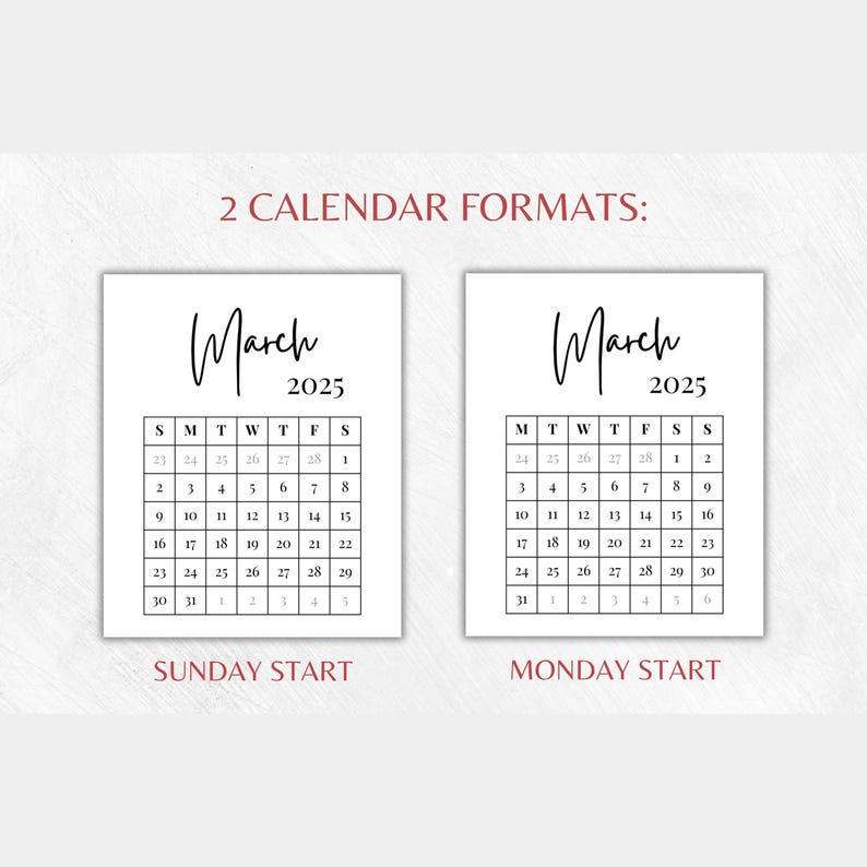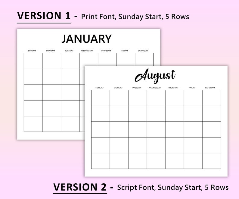 Printable Calendar With Handwritten Style Font - Etsy