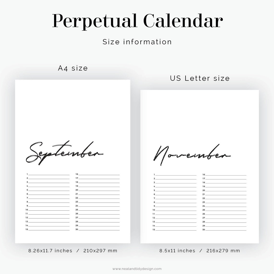 Printable Perpetual Wall Calendar brush Script Printable - Etsy