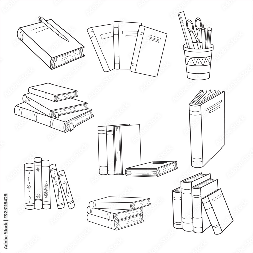 Line art of hand drawing books set illustration. 51557909 Vector Art at ...