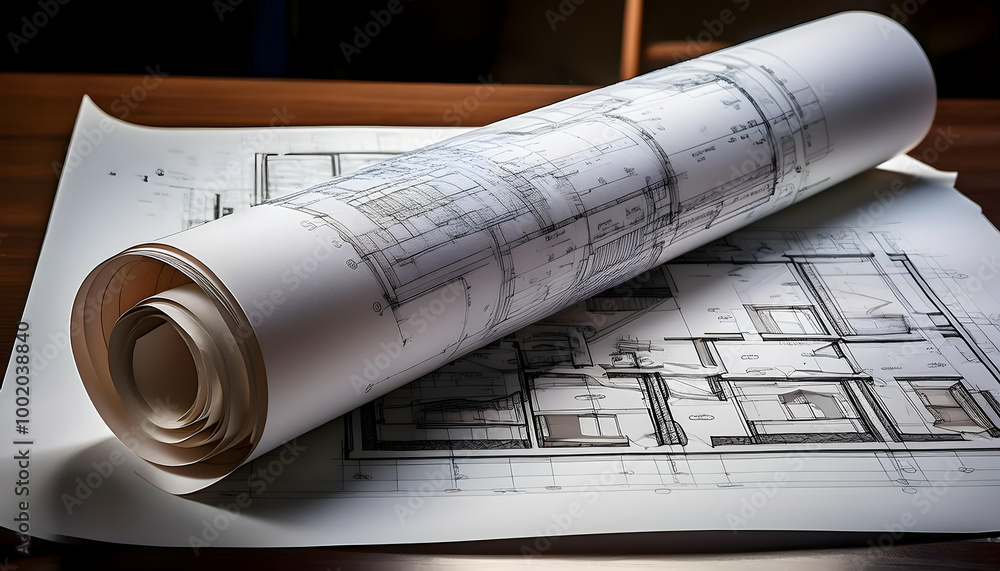 Rolled Drawing Template Paper. 3d Rendering Stock Photo | Adobe Stock