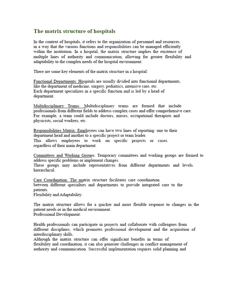 The Matrix Structure of Hospitals | PDF | Hospital | Interdisciplinarity