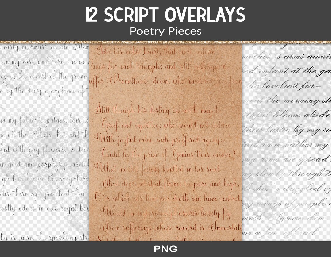 12 Script PNG Overlays, Poetry Pieces, Black Text Clipart Overlays ...
