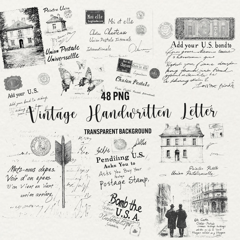 Vintage Handwriting Letter Overlays: Scrapbook Pngs (commercial Use) - Etsy