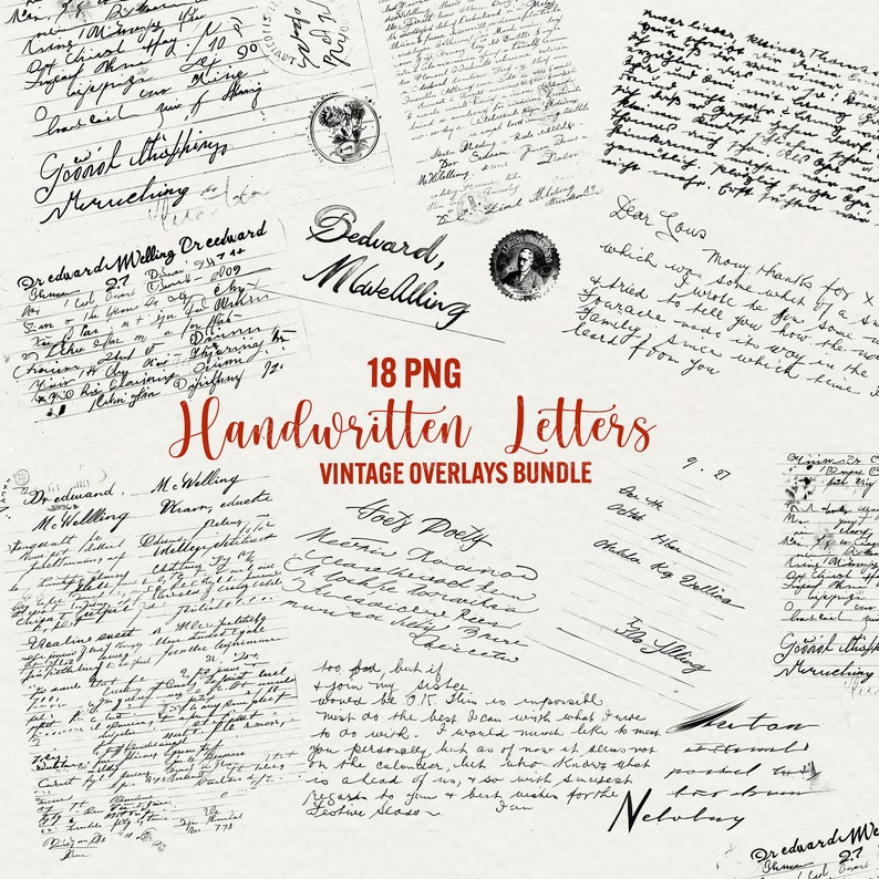 Vintage Handwriting Overlays, 18 Png Old Letters Script PNG Overlay ...