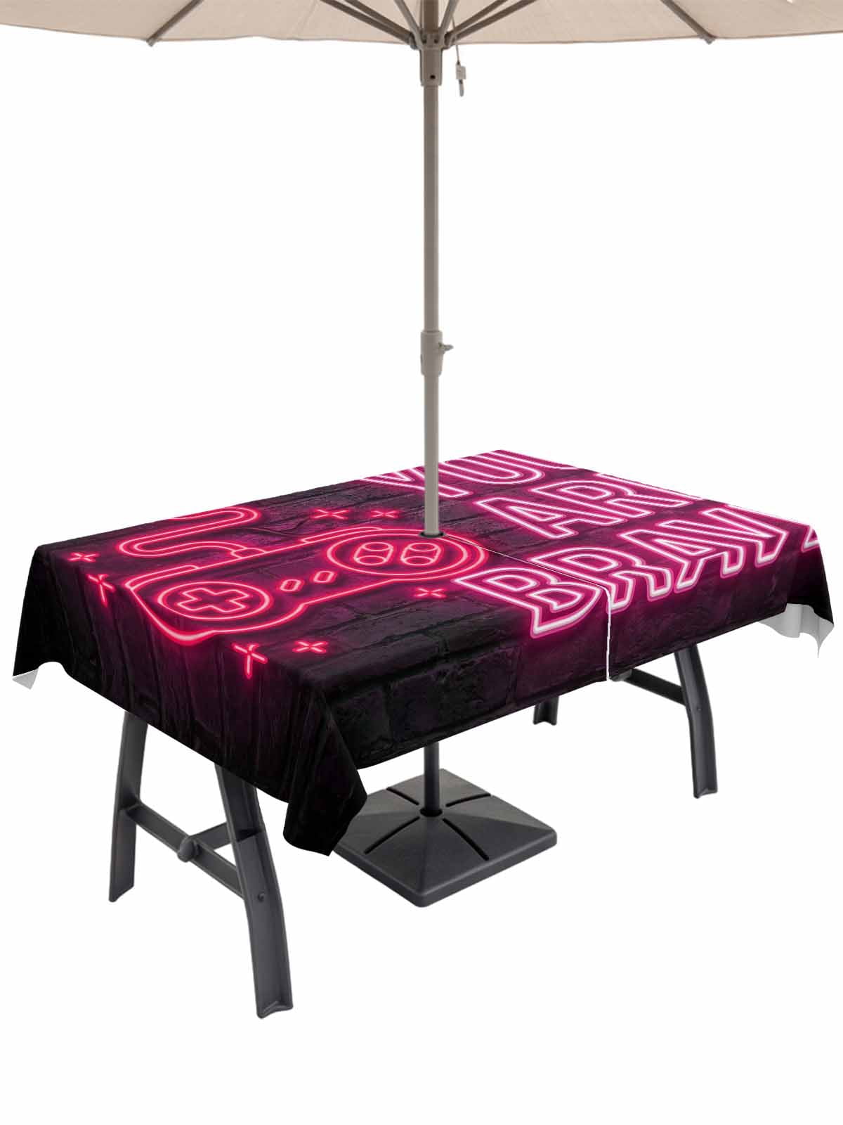 Art Gaming Icons Rectangle Outdoor Tablecloth with Umbrella Hole Multi ...