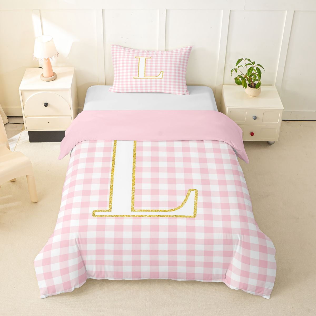 Castle Fairy Plaid Gold Letter L Twin Bedding for Girls,Minimalism ...