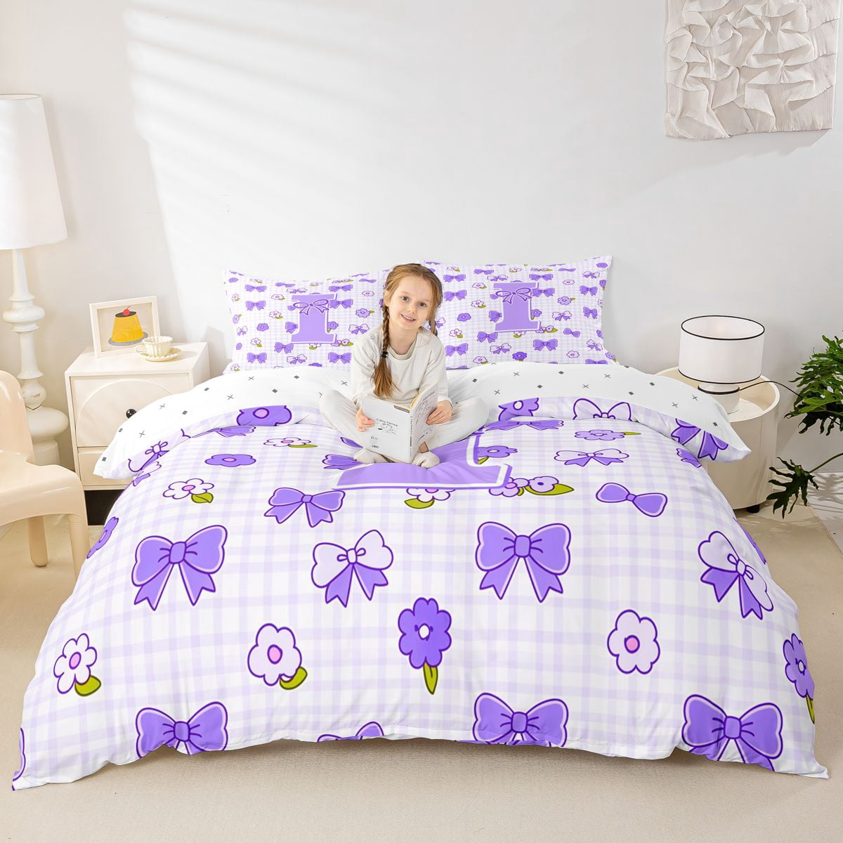 Feelyou Cute Bow Letter I Duvet Cover Set for Girls, Floral Plaid ...