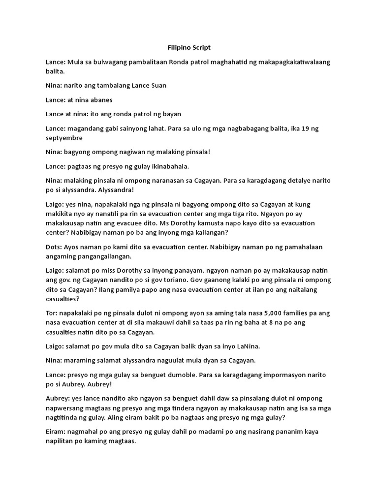 Script Broadcasting Sample News Report Balita Tagalog Filipino 4 ...