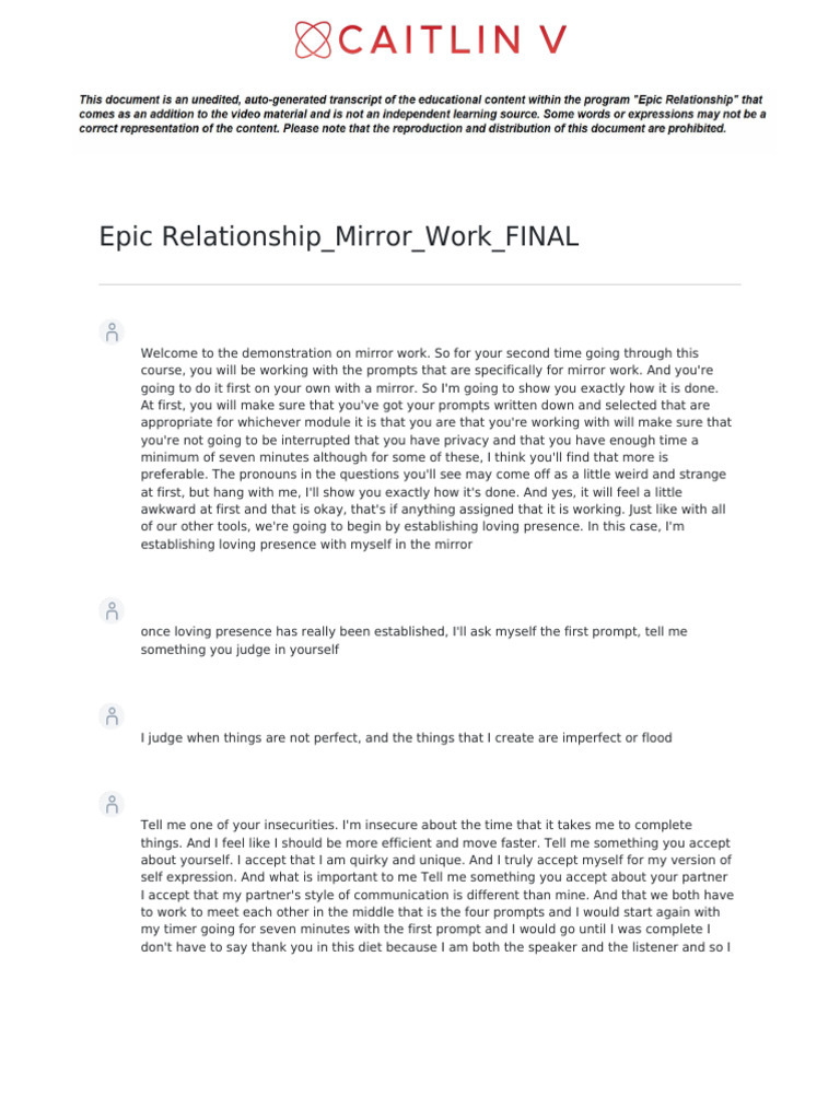 CaitlinV ER Mirror Work Transcript | PDF | Self-Improvement
