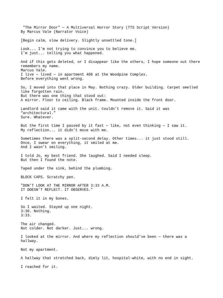 The Mirror Door TTS Script | PDF