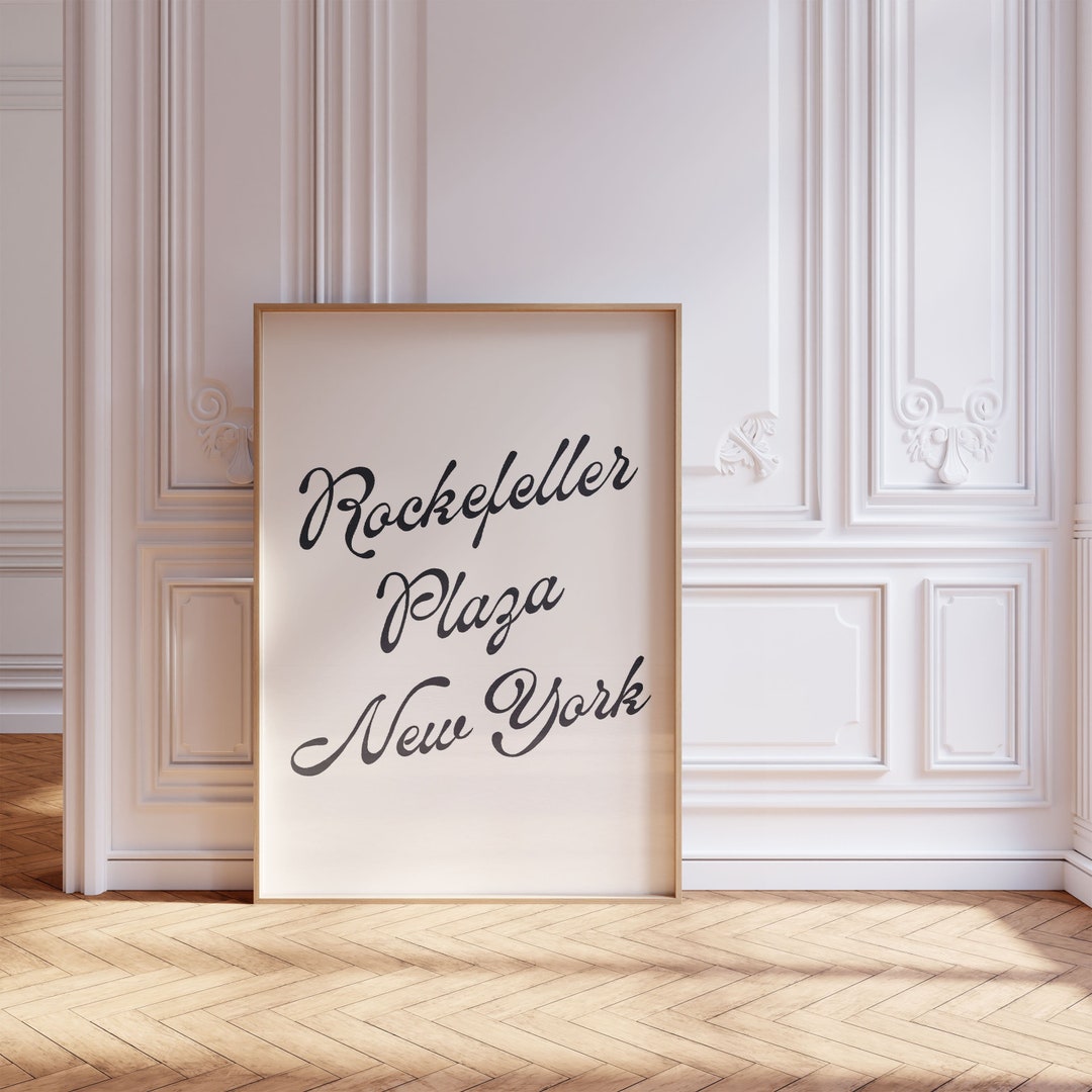 Rockefeller New York Print, Script Lettering Art, NYC Decor, Aesthetic ...