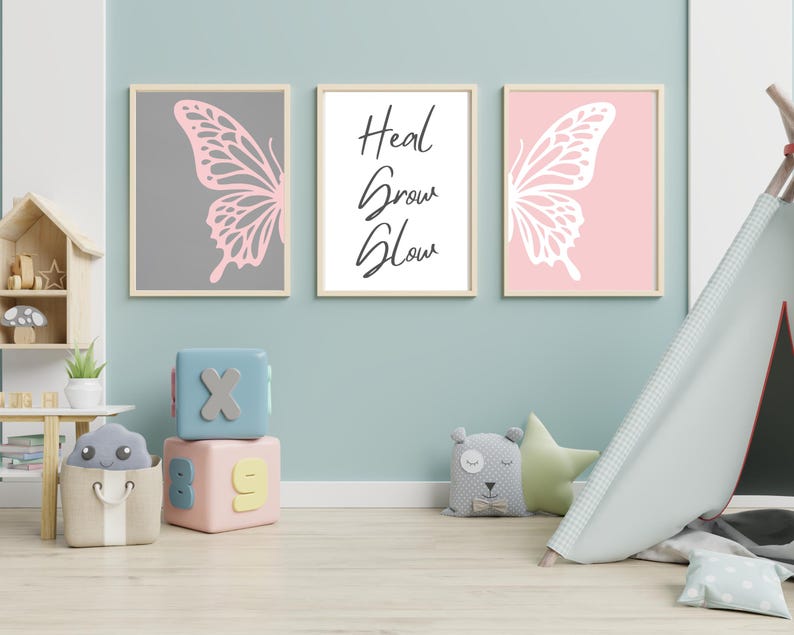 Soft Pink Butterfly Wall Art, Nursery Decor, Self-love Quote (digital ...
