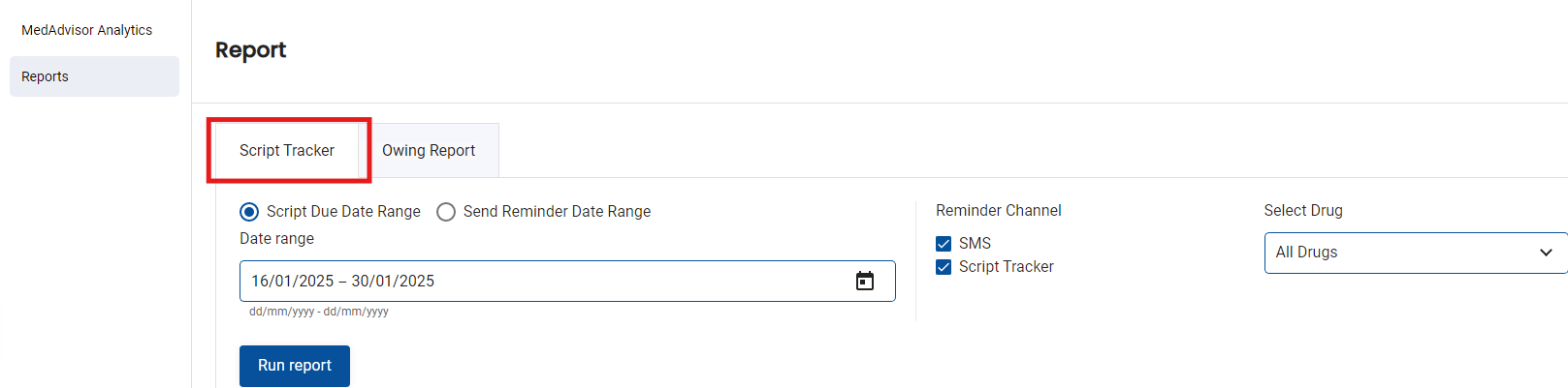 Script Tracker Report – MedAdvisor