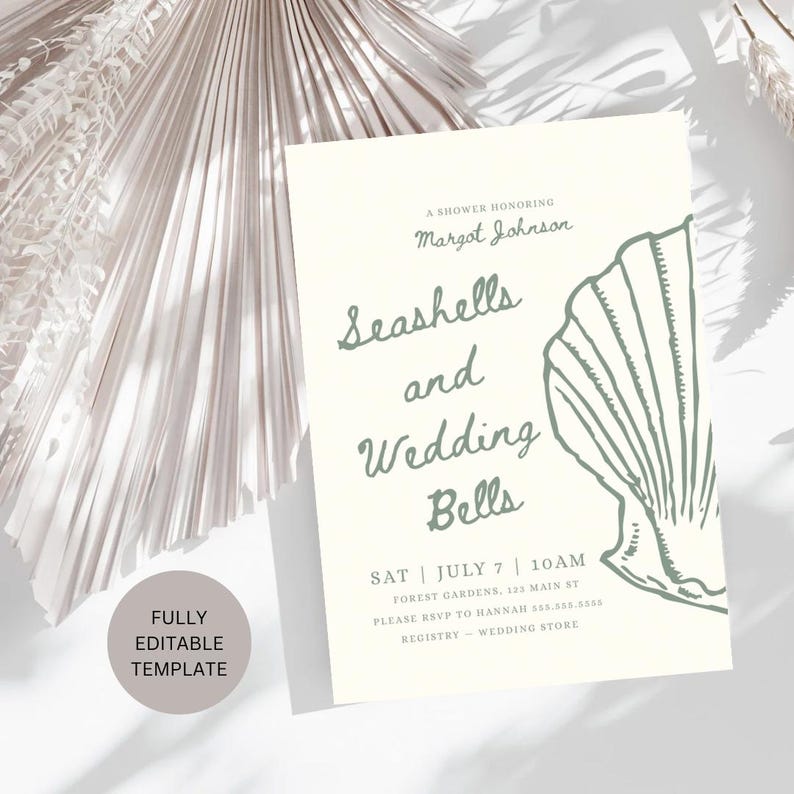 Seashell Wedding Shower Invitation Template: Coastal Bridal Brunch ...