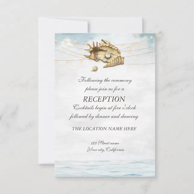 Seashells,Sea,String Lights Script Reception Invitation | Zazzle