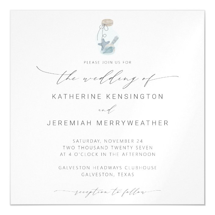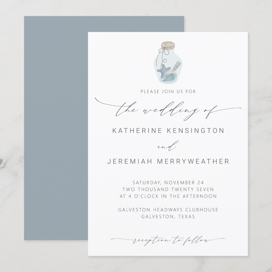 Elegant Beach Seashell Modern Script Wedding Invitation | Zazzle